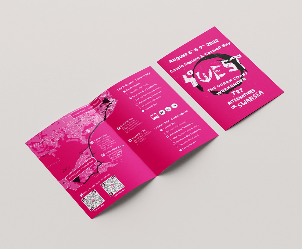 This project involved creating a dynamic and edgy visual identity for "4° West", a conceptual urban and coastal sports weekender held in Swansea. The festival combines activities like skateboarding and graffiti with surfing and paddleboarding, targeting a young, alternative audience.